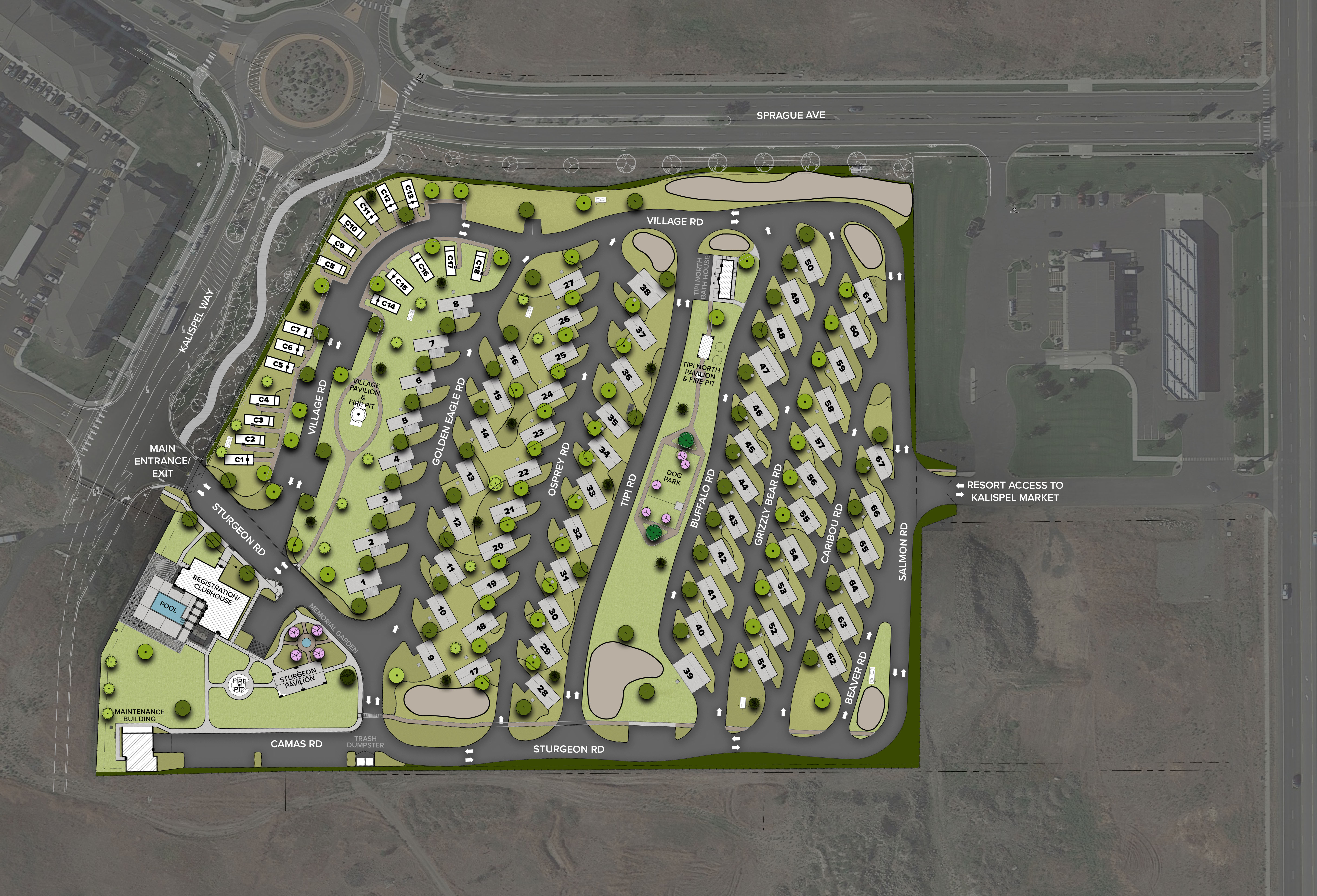 Designed by the Kalispel Tribe in partnership with nationally recognized RV-resort developer Bud Surles, the Northern Quest RV Resort offers 67 luxury RV sites and 18 fully furnished cottages as well as a gated clubhouse, an outdoor pool and patio, and a dog park.